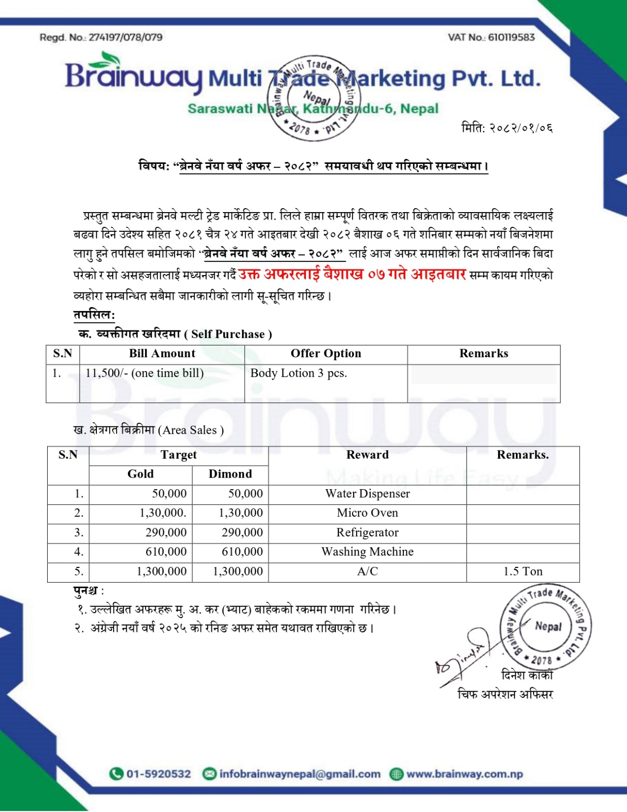 Our executive management and board of directors are passionate leaders who inspire us to live our best lives every day. With their diverse expertise and forward-thinking approach, they empower Brainway Independent Distributors and employees to achieve our vision of becoming the Nepal premier health and wellness company and community.